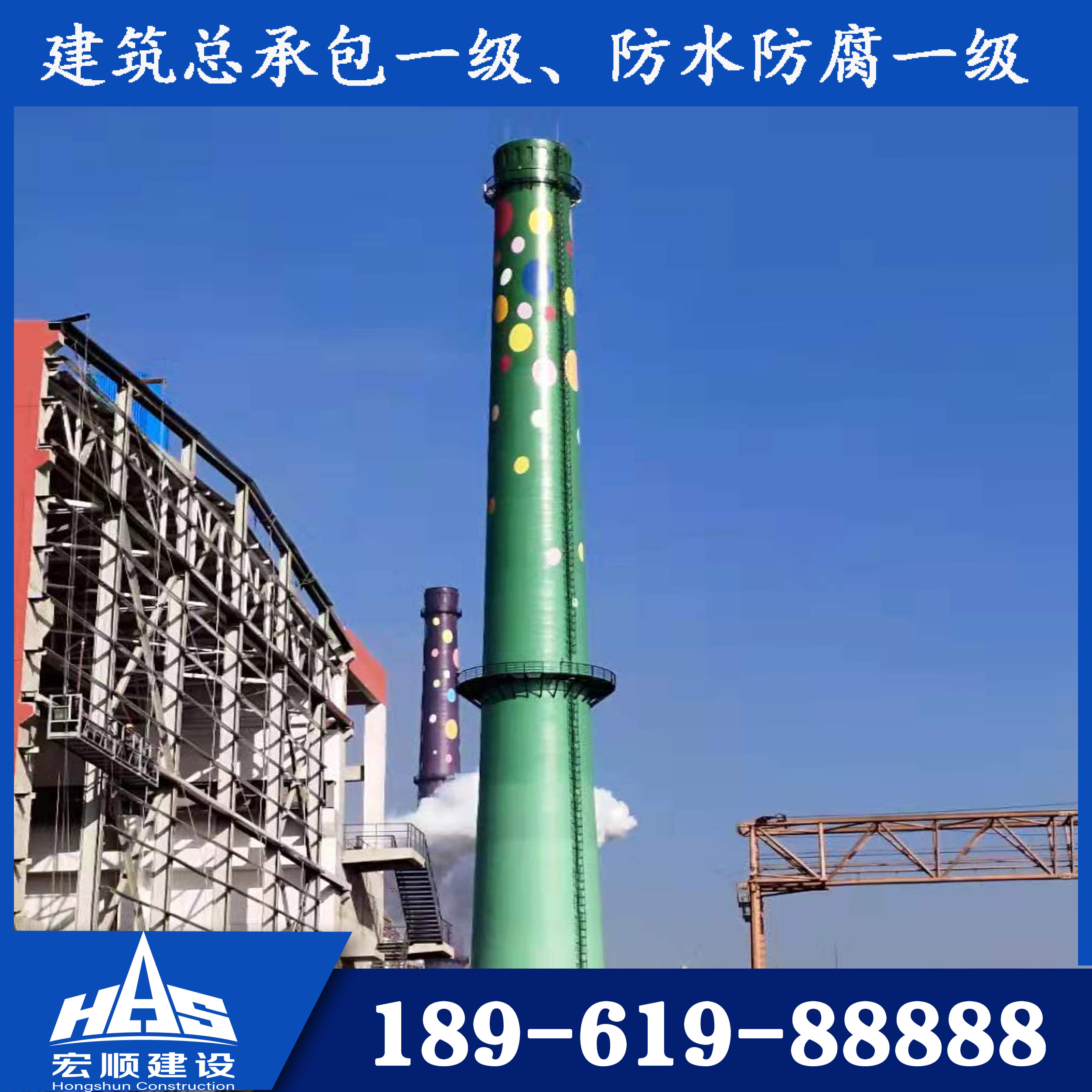 “宏順建設(shè)工程有限公司”是一家集土建、防腐、保溫、鋼結(jié)構(gòu)為一體的大型綜合性建筑企業(yè)。專業(yè)從事高空作業(yè),包括高聳構(gòu)筑物(煙囪、冷卻塔、灰?guī)欤┬陆ā惭b、維修、防腐、保溫、拆除等建筑工程。