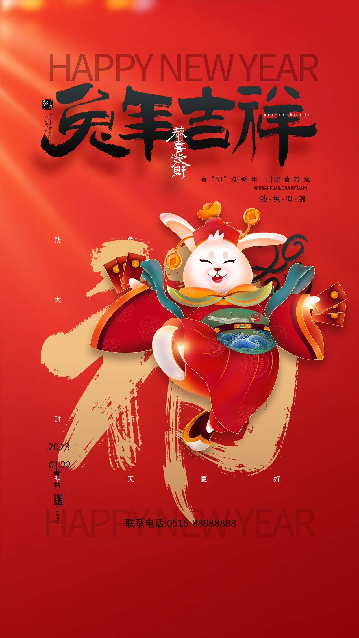 值此新春佳節(jié)到來之際,宏順建設給大家拜年了!恭祝大家身體健康、闔家歡樂!愿大家2023兔飛猛進、共謀發(fā)展、共繪未來!