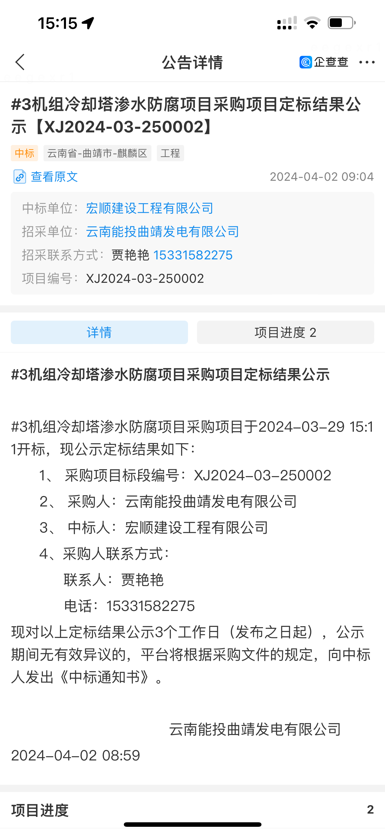 熱烈祝賀我公司中標(biāo)云南機(jī)組冷卻塔滲水防腐項(xiàng)目