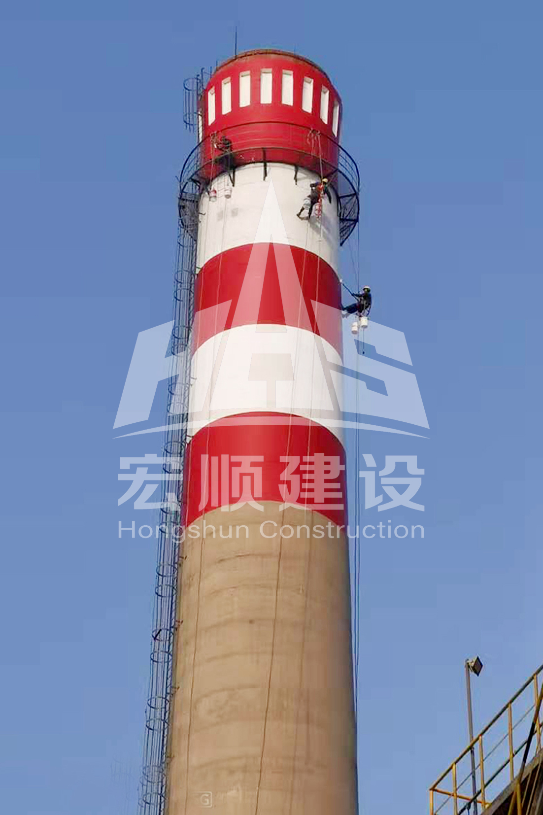 “宏順建設工程有限公司”是一家集土建、防腐、保溫、鋼結構為一體的大型綜合性建筑企業(yè)。專業(yè)從事高空作業(yè),包括高聳構筑物(煙囪、冷卻塔、灰?guī)欤┬陆?、安裝、維修、防腐、保溫、拆除等建筑工程。